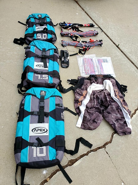 board-short harness, a Dakine spreader bar and an extra new line set.